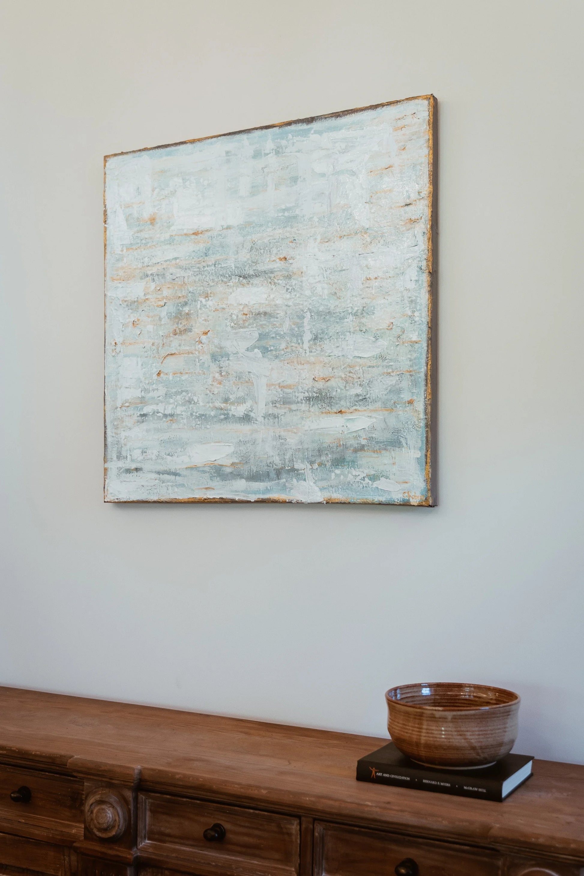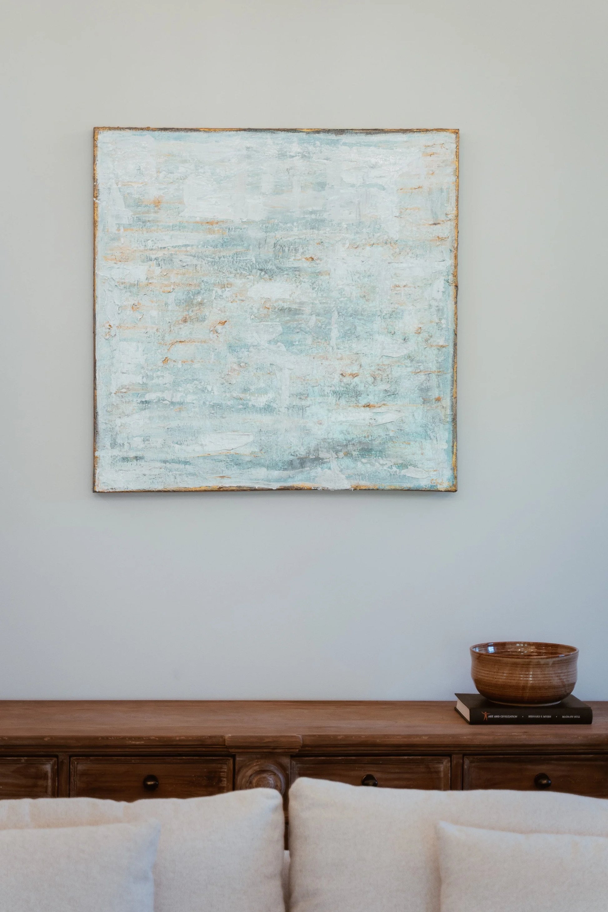 This is an original oil painting on a 36 inch x 36 inch canvas with a 1.5 inch depth. The edges are painted white, the back is wired and it is ready to hang.