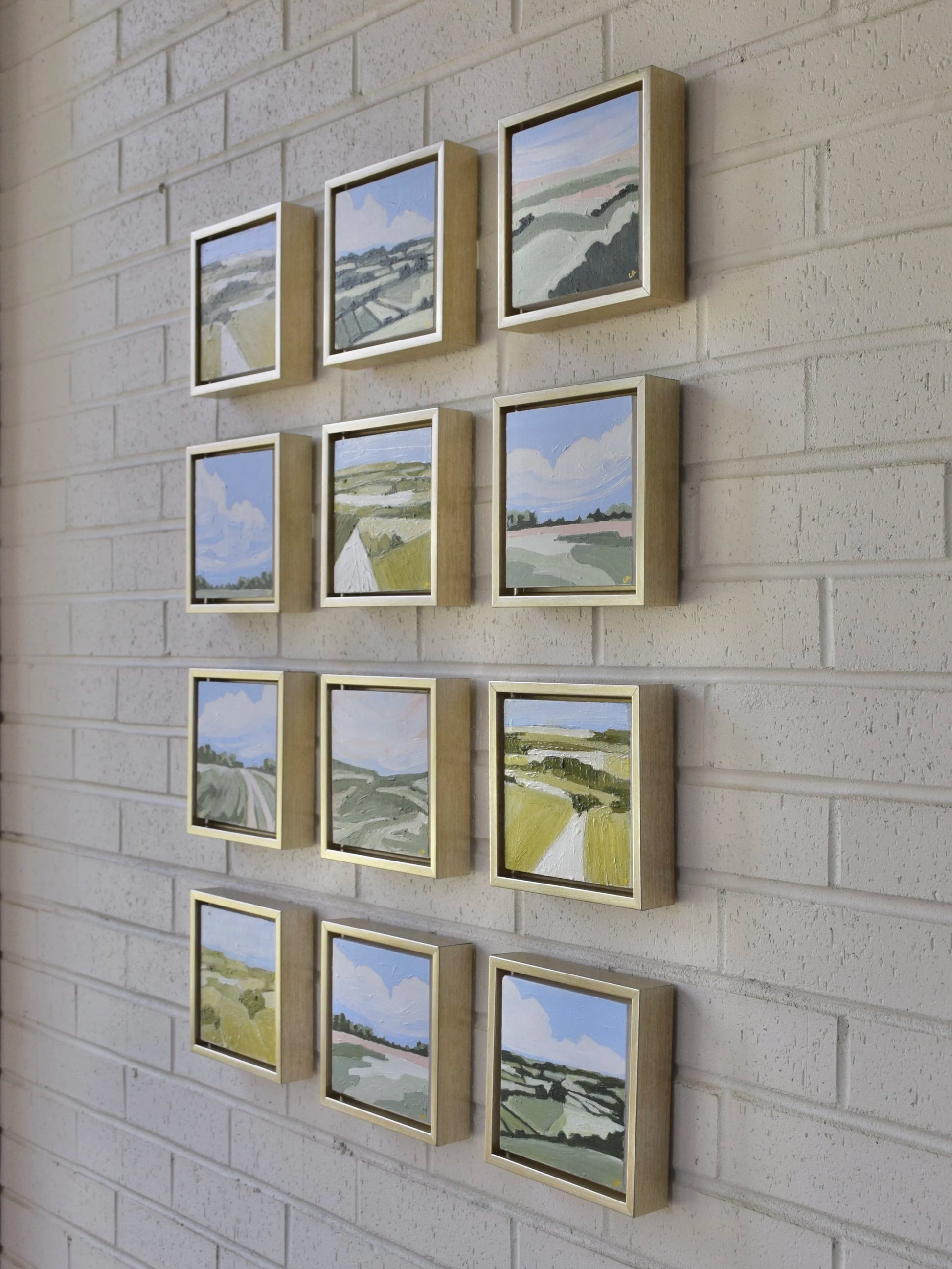 This is an original acrylic painting on a 5 inch x 5 inch birchwood panel in a champagne floater frame. With the frame, the size is 6 inches x 6 inches with a depth of 1.5 inches. The back is wired and it is ready to hang.