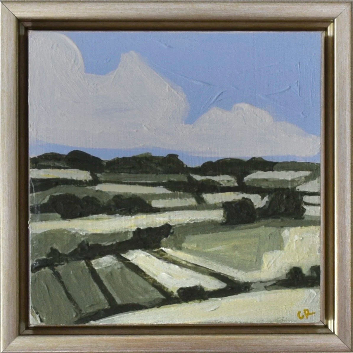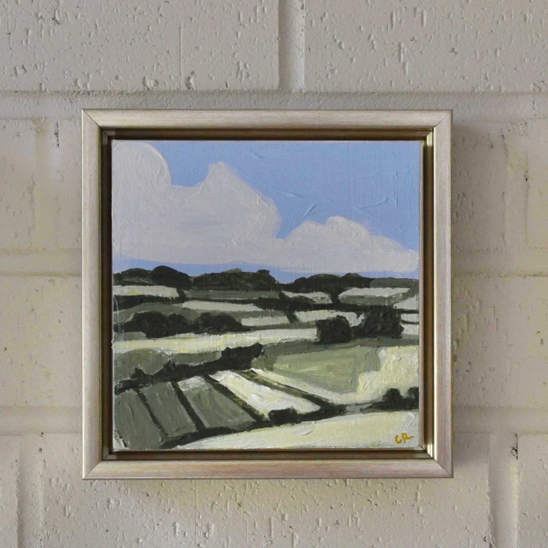 This is an original acrylic painting on a 5 inch x 5 inch birchwood panel in a champagne floater frame. With the frame, the size is 6 inches x 6 inches with a depth of 1.5 inches. The back is wired and it is ready to hang.