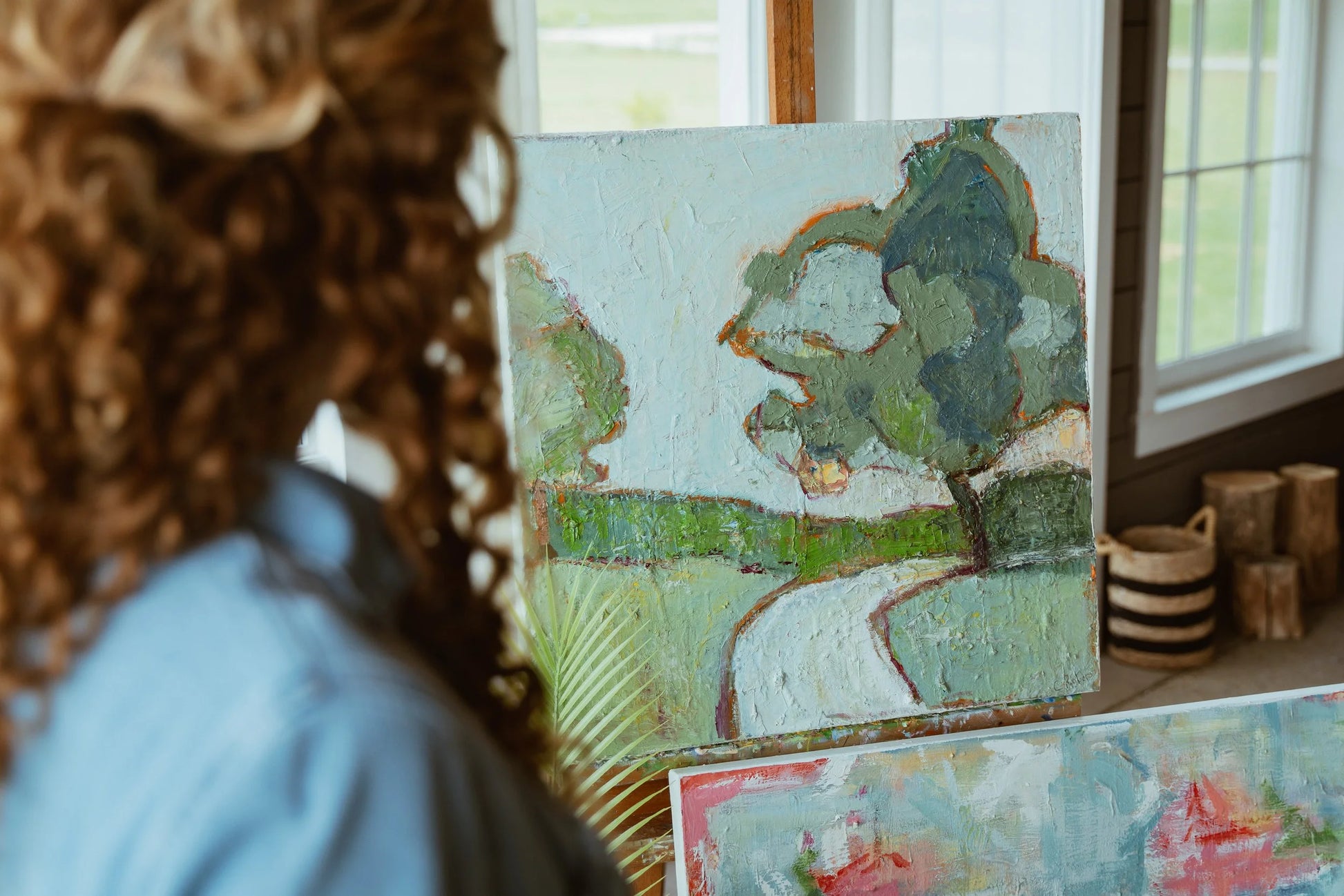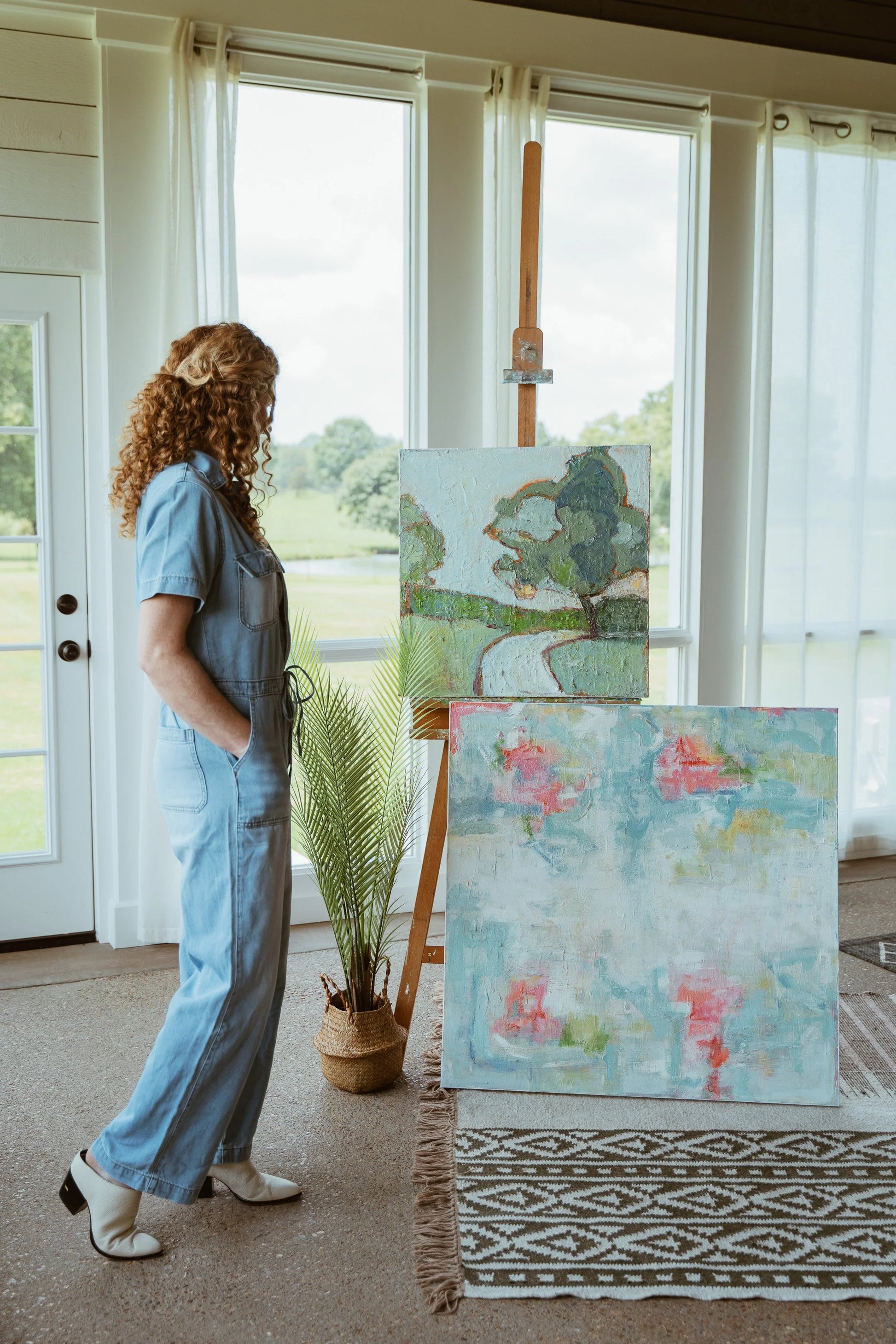 This is an original oil painting on a 24 inch x 24 inch canvas with a 1.5 inch depth and it is custom framed in a champagne floater frame. The total size of painting and frame is 25 inches x 25 inches with a depth of 2 inches.