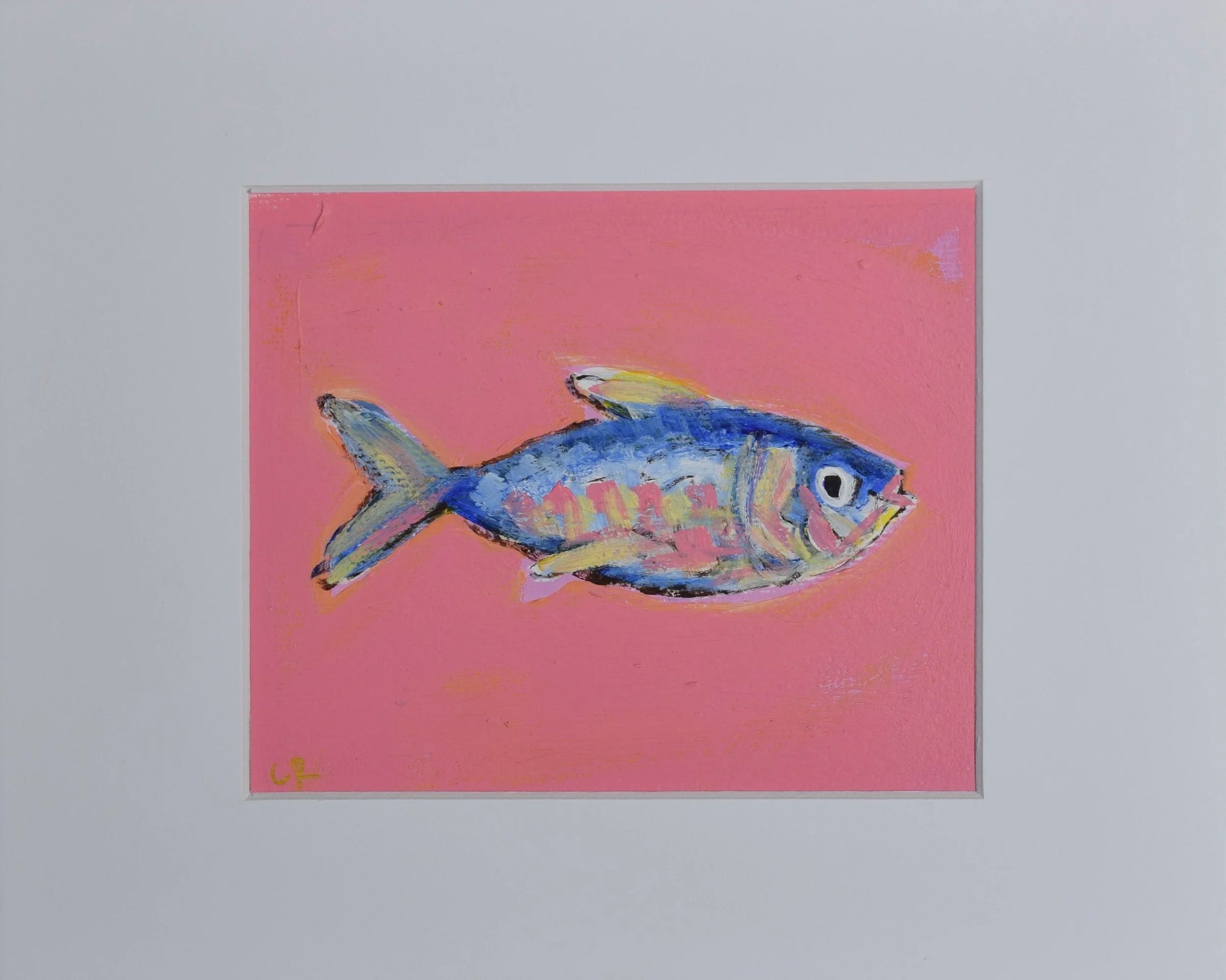 This is an original acrylic painting on heavy weight paper. It is displayed in a bright white mat, mounted on a white backing board and comes in a clear protective plastic sleeve. The actual painting is 5” x 6” and the size of the entire piece is 8” × 10". Painting can be displayed as is or placed in a frame.