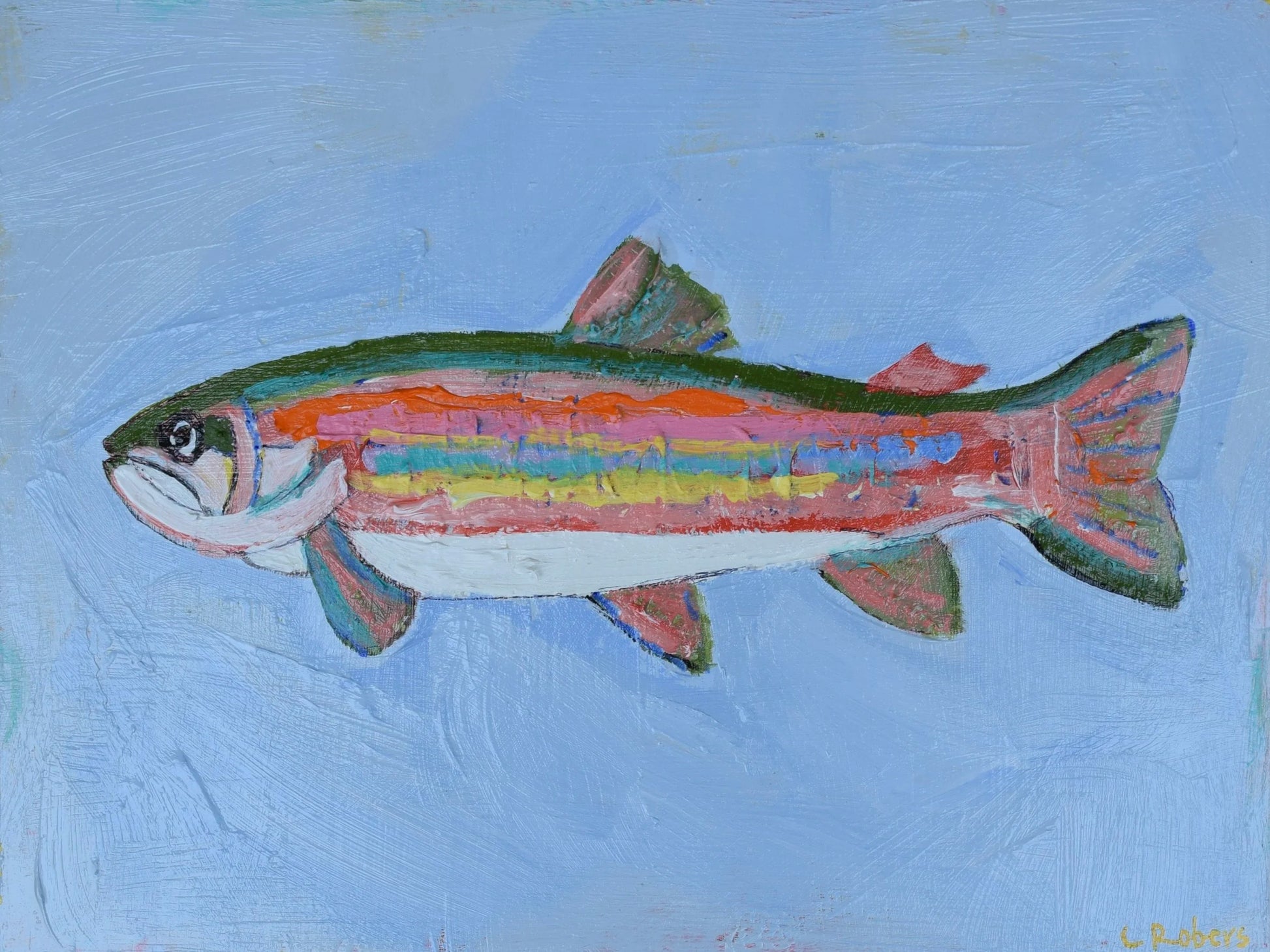 This is an original acrylic painting on an 9 inch x 12 inch birchwood panel with a 1.5 inch depth. The edges are painted a light blue.