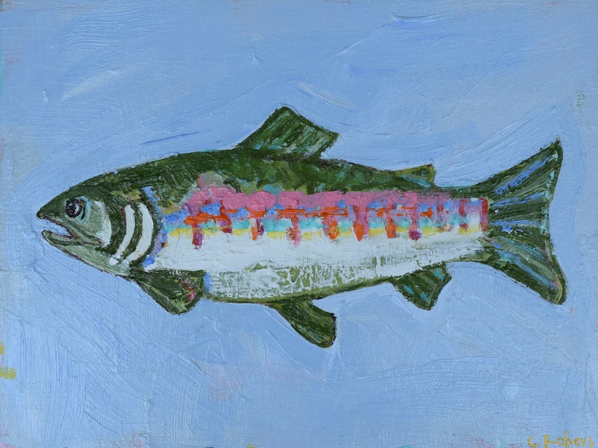 This is an original acrylic painting on an 9 inch x 12 inch birchwood panel with a 1.5 inch depth. The edges are painted a light blue.